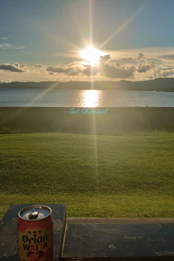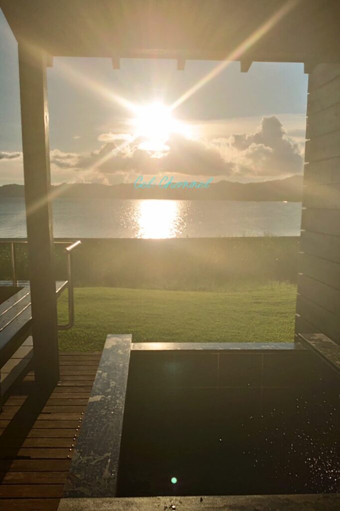 外風呂に浸かってオリオンのWATTAを飲みながら、西表島に沈んでいく夕陽を眺める・・・🌞